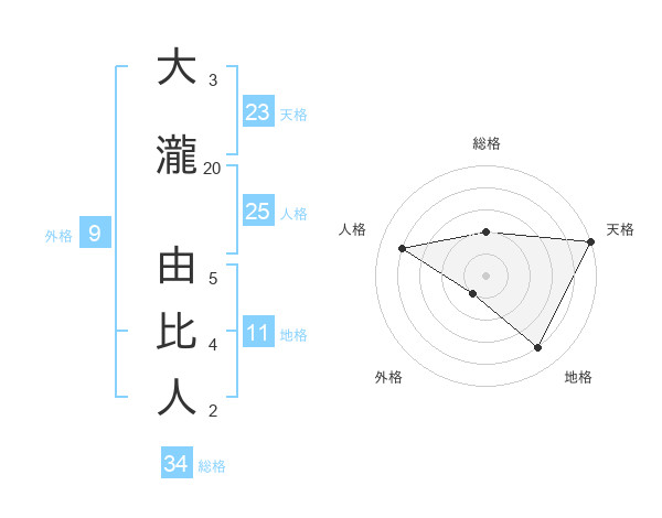 大瀧 由比人さんの天格は23画の5点!