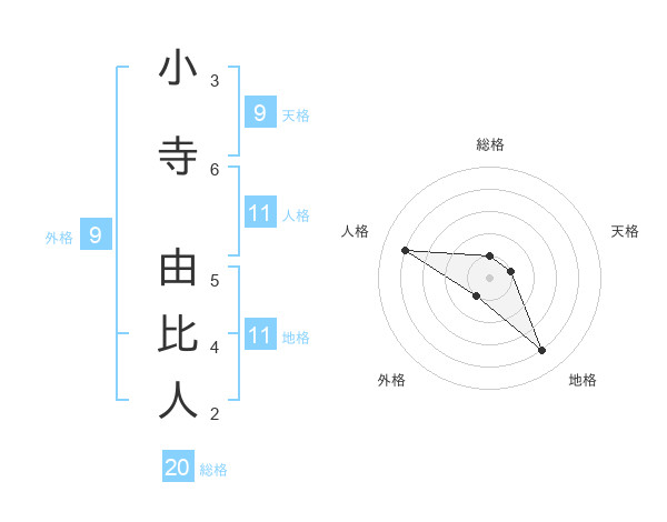 小寺 由比人さんの総格は20画の1点