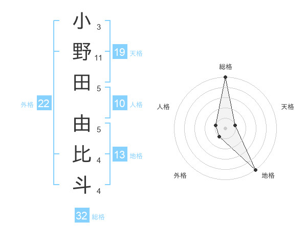 小野田 由比斗さんを姓名の画数から五運を鑑定