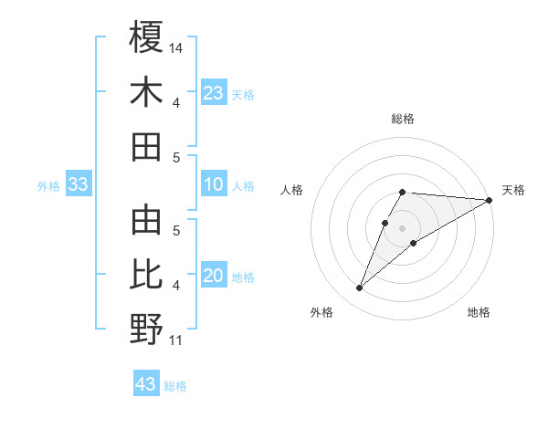 榎木田 由比野さんを姓名の画数から五運を鑑定