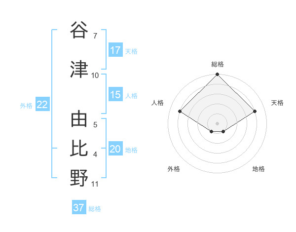 谷津 由比野さんの総格は37画の5点!