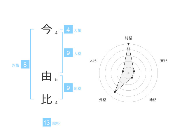 今 由比さんの総格は13画の5点!