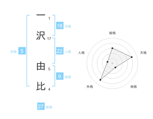 一沢 由比さんの総格は27画の3点!