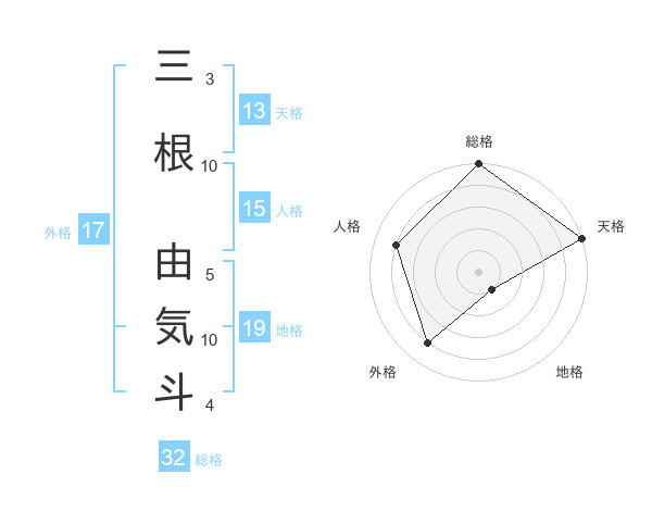 三根 由気斗さんを姓名の画数から五運を鑑定