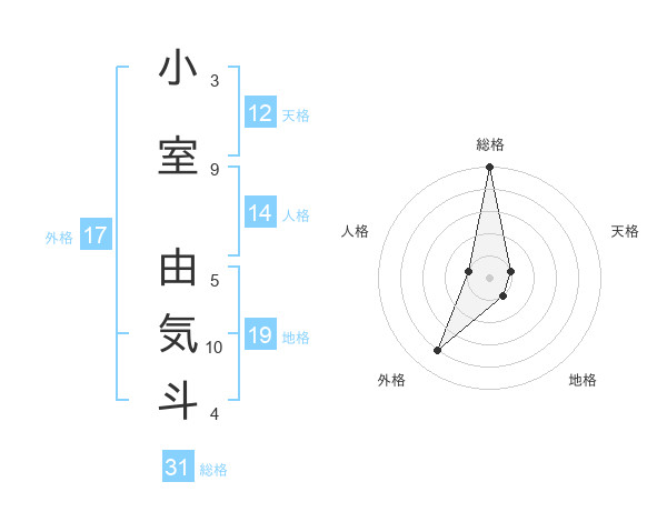 小室 由気斗さんの総格は31画の5点!