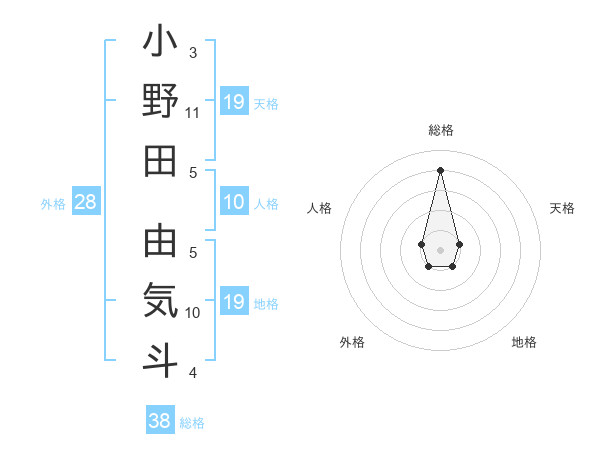 小野田 由気斗さんを姓名の画数から五運を鑑定