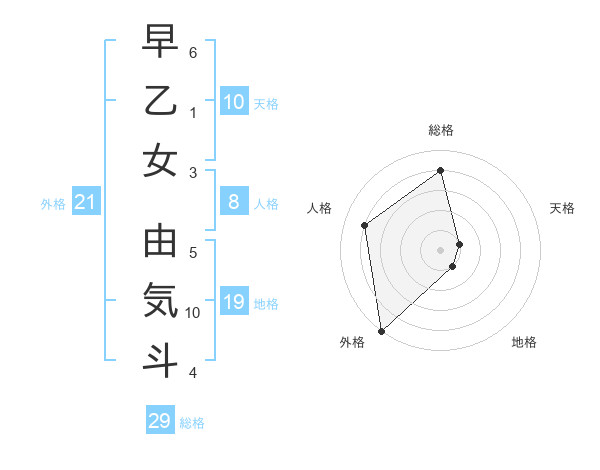 早乙女 由気斗さんを姓名の画数から五運を鑑定