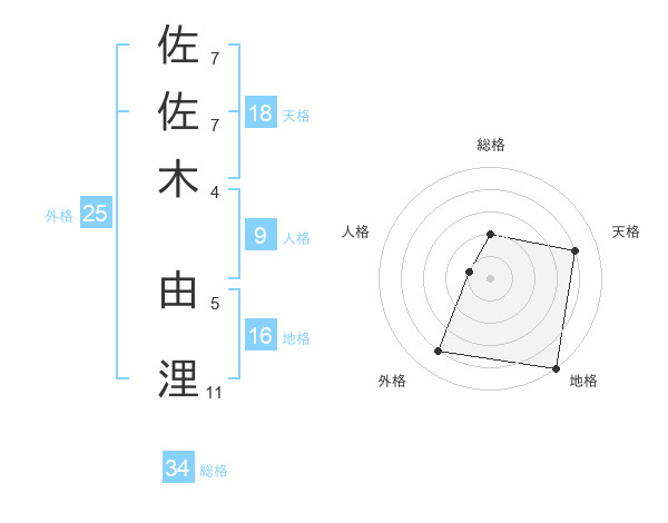 佐佐木 由浬さんの天格は18画の4点!