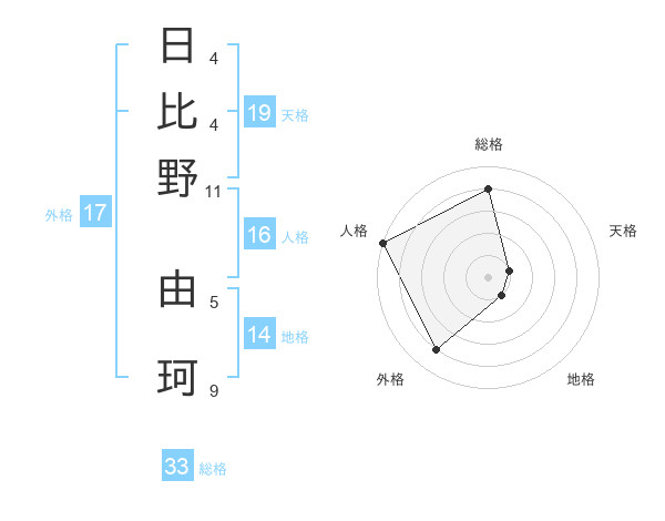 日比野 由珂さんを姓名の画数から五運を鑑定