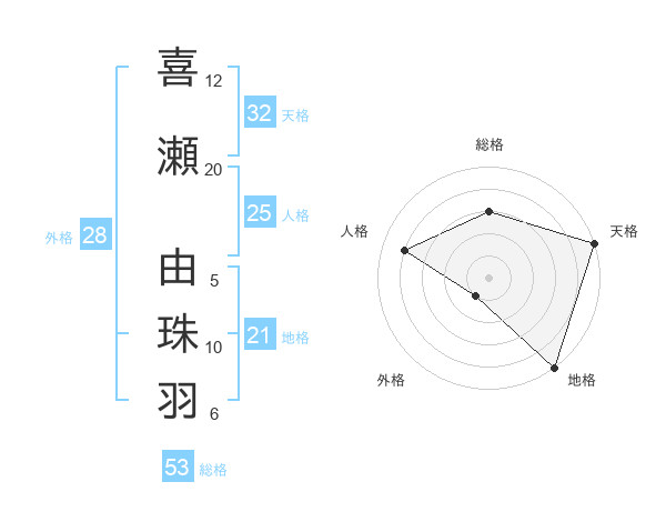 喜瀬 由珠羽さんを姓名の画数から五運を鑑定