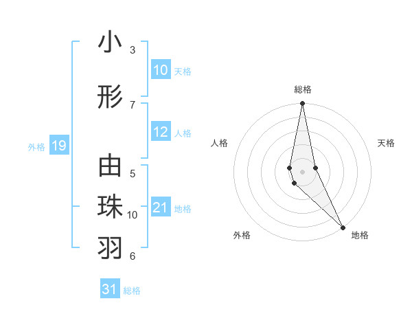 小形 由珠羽さんを姓名の画数から五運を鑑定