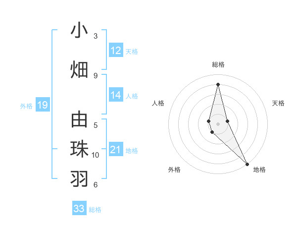 小畑 由珠羽さんの地格は21画の5点!