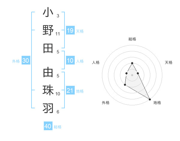 小野田 由珠羽さんの総格は40画の2点!