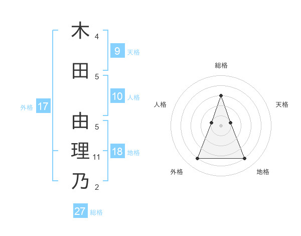 木田 由理乃さんの総格は27画の3点!