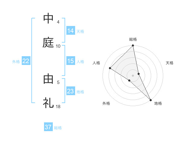 中庭 由礼さんを姓名の画数から五運を鑑定