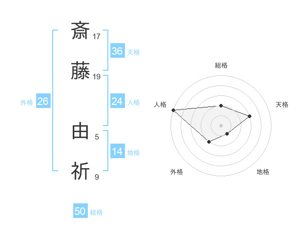 斎藤 由祈さんを姓名の画数から五運を鑑定