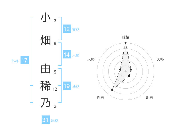 小畑 由稀乃さんを姓名の画数から五運を鑑定