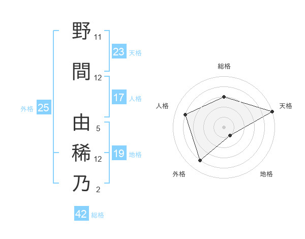 野間 由稀乃さんを姓名の画数から五運を鑑定