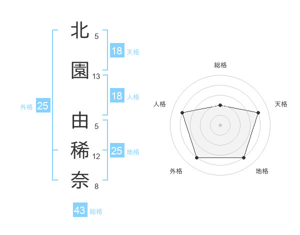 北園 由稀奈さんを姓名の画数から五運を鑑定