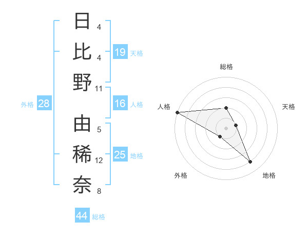 日比野 由稀奈さんの総格は44画の2点