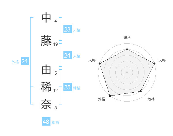 中藤 由稀奈さんの総格は48画の4点!