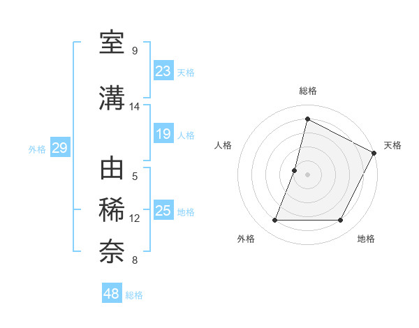 室溝 由稀奈さんの天格は23画の5点!