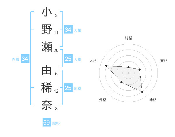 小野瀬 由稀奈さんを姓名の画数から五運を鑑定
