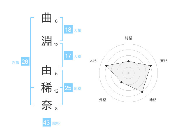 曲淵 由稀奈さんを姓名の画数から五運を鑑定