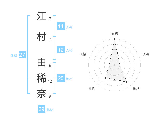 江村 由稀奈さんの総格は39画の5点!