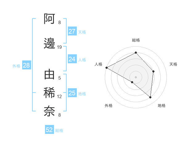 阿邊 由稀奈さんを姓名の画数から五運を鑑定