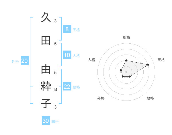 久田 由粋子さんを姓名の画数から五運を鑑定