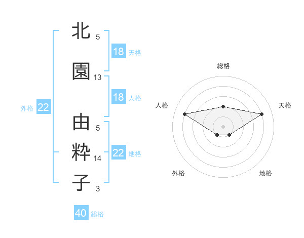 北園 由粋子さんを姓名の画数から五運を鑑定