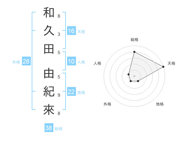 和久田 由紀來さんの総格は38画の4点!