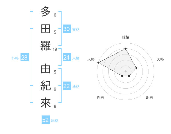 多田羅 由紀來さんを姓名の画数から五運を鑑定