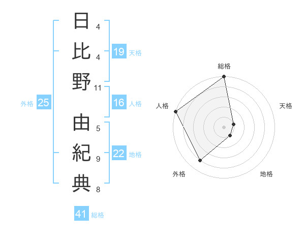 日比野 由紀典さんを姓名の画数から五運を鑑定