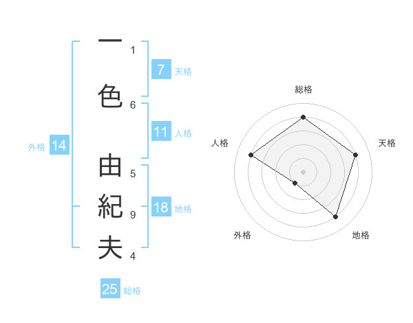 一色 由紀夫さんを姓名の画数から五運を鑑定