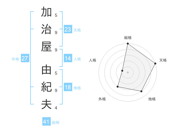 加治屋 由紀夫さんの総格は41画の5点