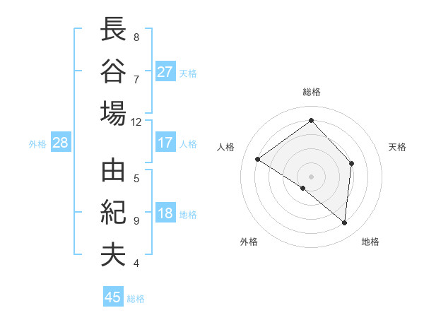 長谷場 由紀夫さんを姓名の画数から五運を鑑定