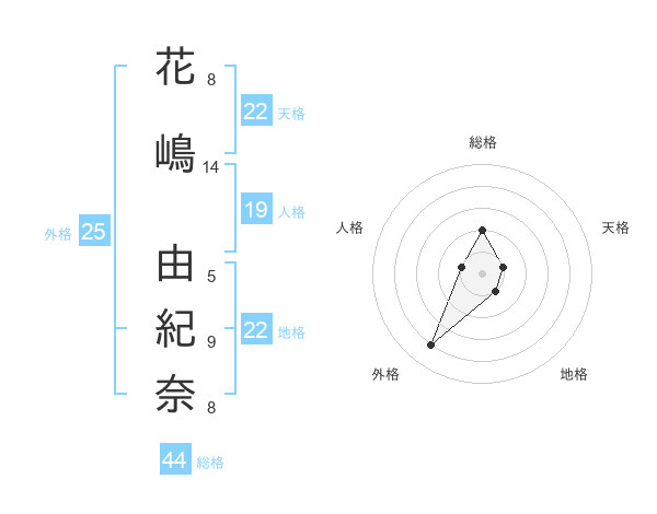 花嶋 由紀奈さんを姓名の画数から五運を鑑定