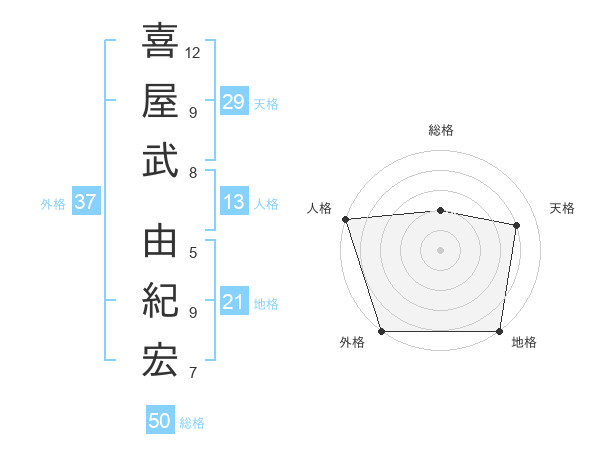 喜屋武 由紀宏さんを姓名の画数から五運を鑑定