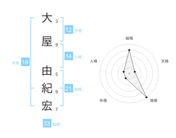 大屋 由紀宏さんを姓名の画数から五運を鑑定