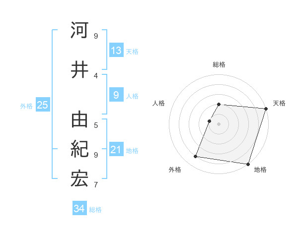 河井 由紀宏さんを姓名の画数から五運を鑑定