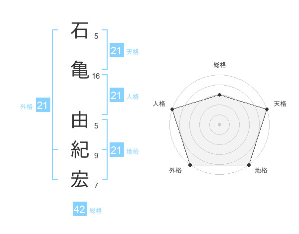 石亀 由紀宏さんを姓名の画数から五運を鑑定