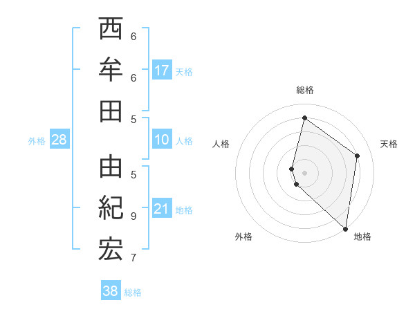西牟田 由紀宏さんの天格は17画の4点!