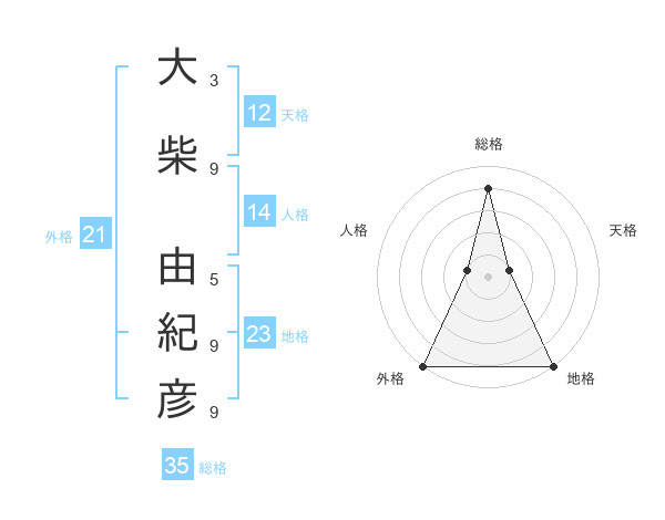 大柴 由紀彦さんを姓名の画数から五運を鑑定