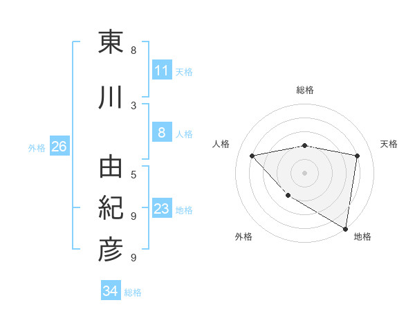 東川 由紀彦さんの天格は11画の4点!