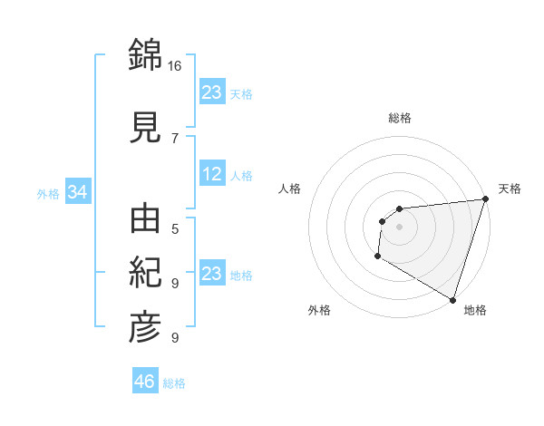 錦見 由紀彦さんの天格は23画の5点!