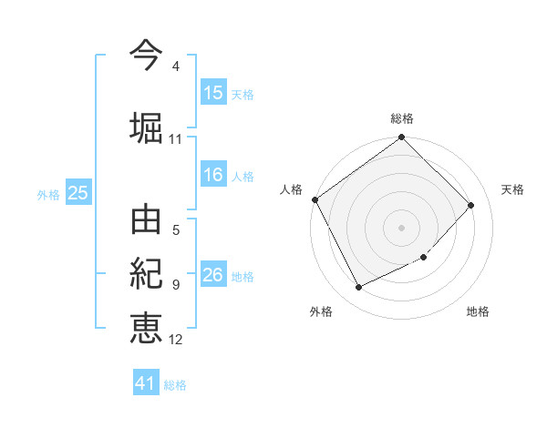 今堀 由紀恵さんを姓名の画数から五運を鑑定