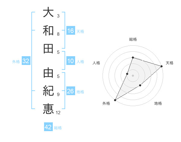 大和田 由紀惠さんを姓名の画数から五運を鑑定