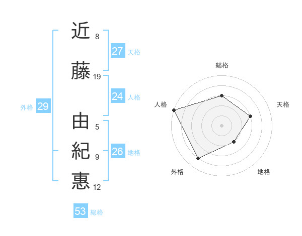 近藤 由紀惠さんの総格は53画の3点!